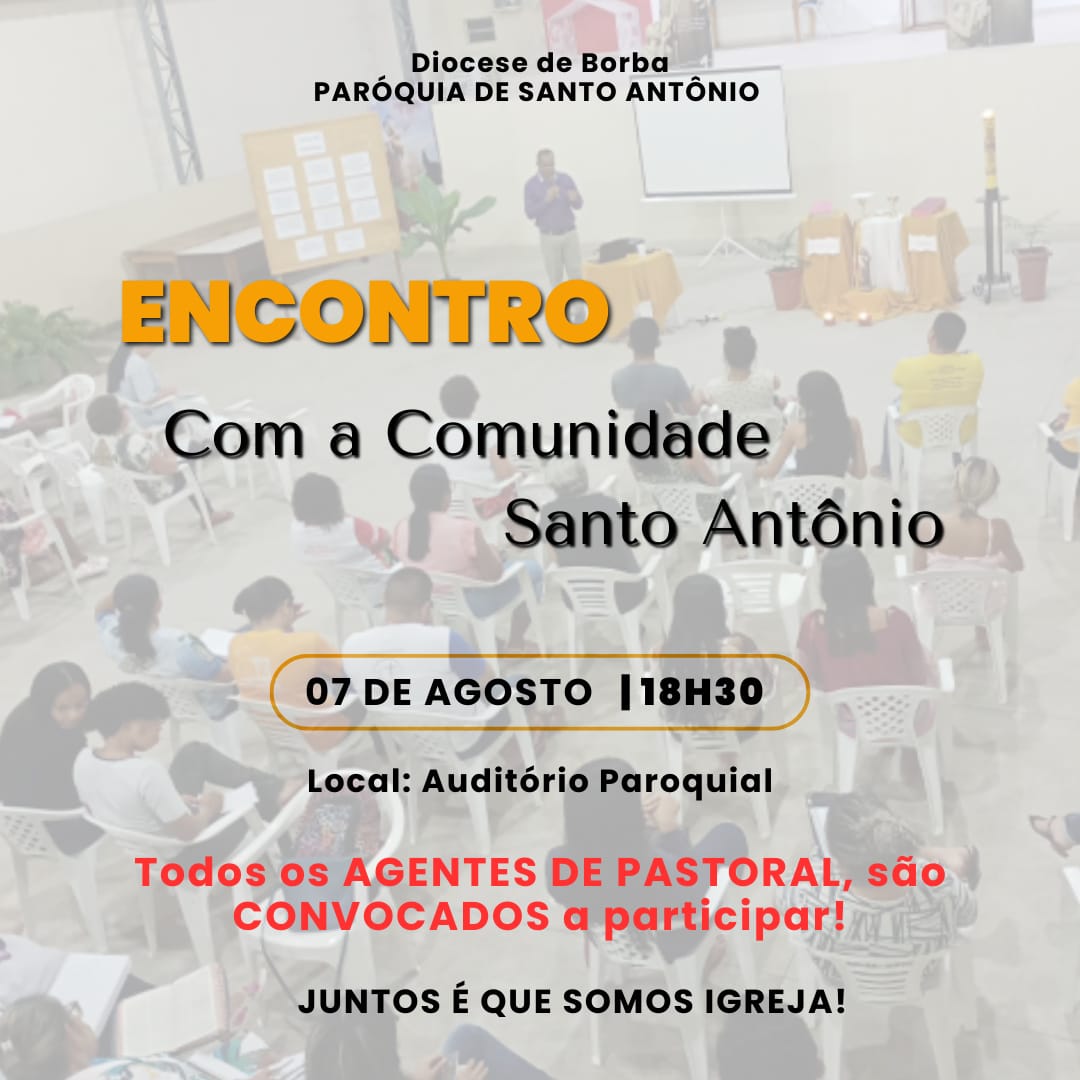 Com isso, faremos nosso 1° ENCONTRO como COMUNIDADE DE SANTO ANTÔNIO/CENTRO.
