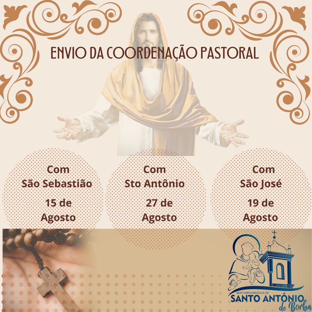 Nas comunidades ocorrerá envio da nova coordenação pastoral nesse mês vocacional nos seguintes dias;