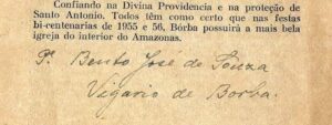 Depois de D. José [Afonso], estiveram na Matriz de Borba, em visita pastoral, o bispo-mártir D. Antonio de Macêdo Costa, D. José Lourenço da Costa Aguiar, primeiro bispo do Amazonas, D. Frederico Costa, D. João Irineu, D. Basílio Pereira e D. João da Mata.