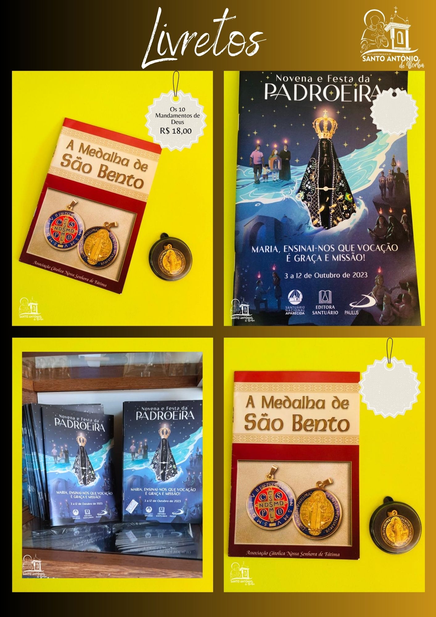 Livros disponíveis na lojinha da basílica