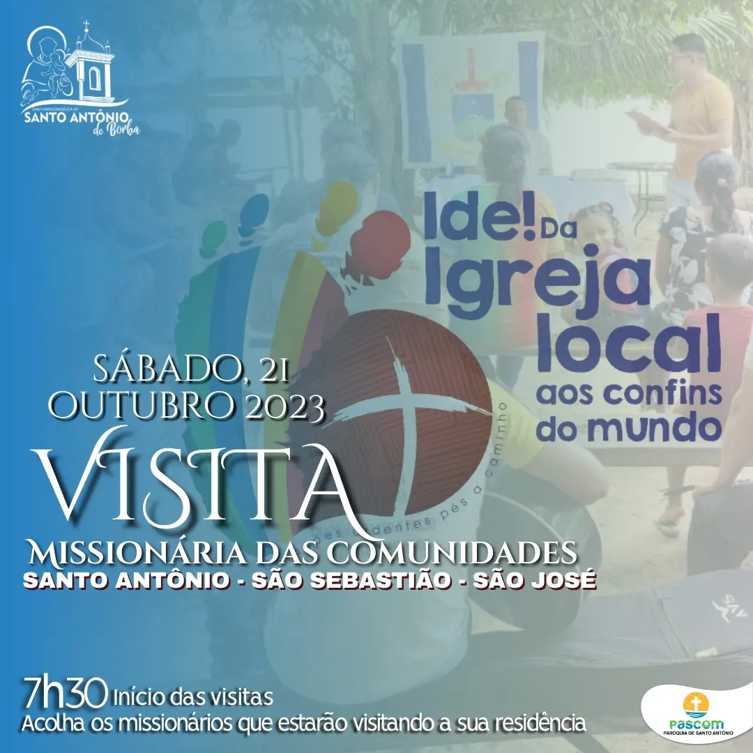 E em comunhão com toda a igreja do Brasil, as nossas comunidades de Santo Antônio, São Sebastião e São José, comprometidos com o trabalho missionário e na busca de maneiras para fazer a propagação do Evangelho, estarão fazendo um mutirão de visitas missionárias nas famílias.